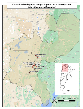 De esta manera, se llevaron a cabo 18 entrevistas en profundidad a diferentes integrantes de las comunidades diaguitas bajo estudio: autoridades comunitarias (caciques), secretarias de la comunidad, delegados/as de base y comuneras/os. También se realizaron 10 entrevistas a referentes de programas nacionales y provinciales de salud para pueblos originarios, así como a profesionales y personal de la salud que trabajan en dichos territorios y con dicha población.
