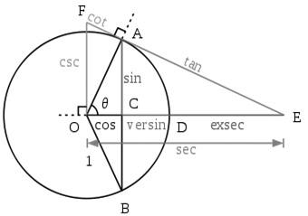 “Todas las funciones trigonométricas de un ángulo θ pueden ser construidas geométricamente en términos de un círculo unidad centrado en O”.