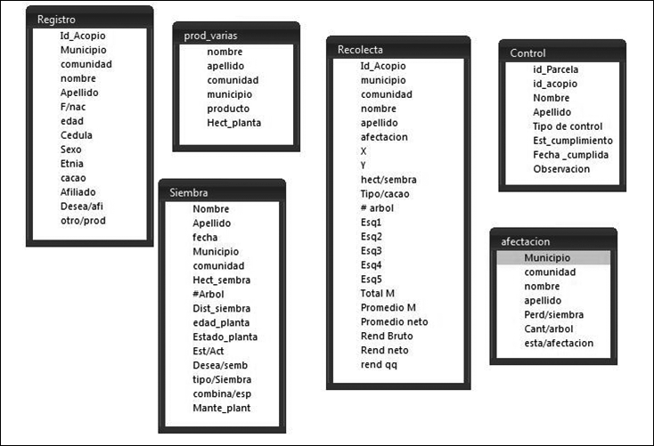 Figura 1. Estructura de la Base, Tablas Microsoft Access 2007