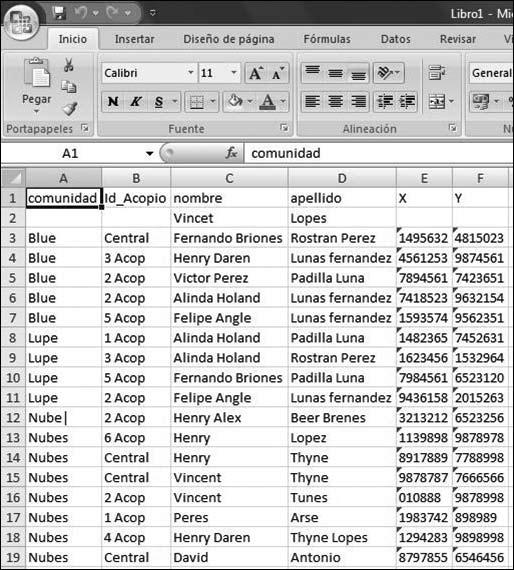 Con la exportación de los datos a Microsoft Excel, se pretende contar con la ubicación de las parcelas de los productores de cacao, ya que con dichas coordenadas se puede geo-referenciar, ocupando un software de cartografía tal como ArcGis o ArcView , que son los más ocupados y mencionados aquí en la región autónoma y estas utilizan enlaces con EXCEL.