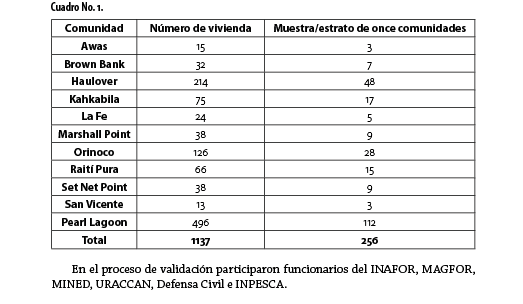 En el estudio se aplicó una metodología mixta con enfasis en el paradigma socio-crítico. La investigación se desarrolló en el año 2010 en once comunidades del municipio Laguna de perlas, RAAS, como son: Haulover, Kahkabila, Marshall Point, Pearl Lagoon, Orinoco, La Fe, Raití Pura, Brown Bank, Set Net Point, Awas y San Vicente.