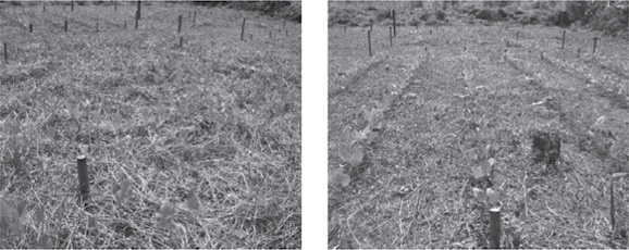 semilla en cada parcela, la cual fue cortada, picada y tapada con función de una cama se siembra, en el caso del método al voleo (Foto 2).