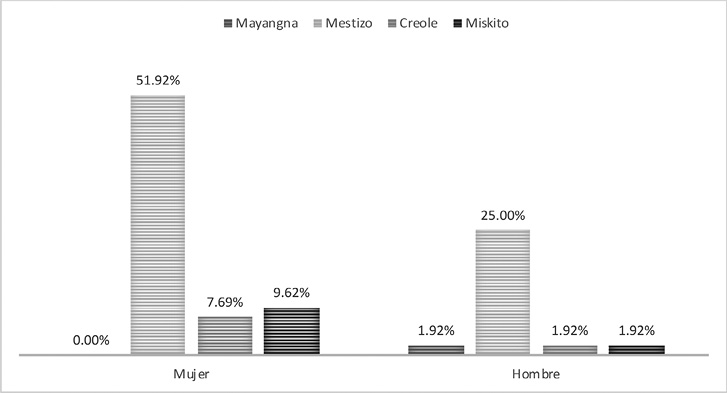 El 69.21% de los participantes son mujeres, frente al 30.79% que son hombres. Respecto a su edad media se sitúa entre 40, encontrándose al 57% de los participantes en el intervalo de edad entre 35-45 años. En referencia a la variable etnia: el 11.54% son indígenas miskitus; el 1.92% son indígenas mayangnas; el 9.62% creole (afrodescendientes) y el 76.92% mestizos. Otra característica de los participantes es sobre el grado de Maestría que han realizado en sus estudios de postgrado. Véase en el cuadro 1: