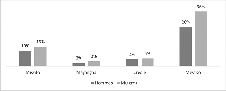 El 58% (504) de los participantes son mujeres, frente al 42% (372) que son hombres. Respecto a su edad, la media se sitúa en 18 años, encontrándose al 84% de los participantes en el intervalo de edad entre 18-21 años. En referencia a la variable etnia: el 23% son indígenas miskitu; el 5% indígenas mayangna; el 9% creole (afrodescendientes); y el 62% mestizos. Otra característica de los participantes es que todos son estudiantes de nuevo ingreso y han recibido el curso de matemática para la vida al ingresar a la universidad.
