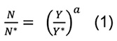 Este método propone estimar para la relación entre producto y desempleo dos aspectos: En primer lugar, que existe una elasticidad constante entre el cociente del PIB observado (Y) y el PIB potencial (Y*), respecto del cociente de los niveles de empleo observados (definidos como N = 100 – u), y los niveles de empleo de pleno empleo (N*). Es decir: