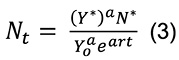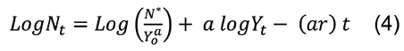 Y, en segundo lugar, asume un crecimiento constante del producto (Y), a partir de un valor inicial (Yo), es decir: