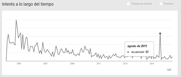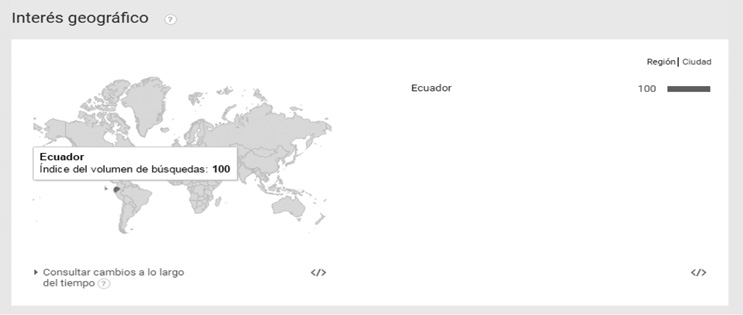 Otro aspecto que es importante tomar en cuenta es que los intereses de búsqueda en la red en base a este tema se encuentran únicamente (en las métricas que muestran en base al número de búsquedas) concentrados geográficamente en el Ecuador, lo cual dejó ver la necesidad de ampliar los horizontes de difusión y reforzarlos.