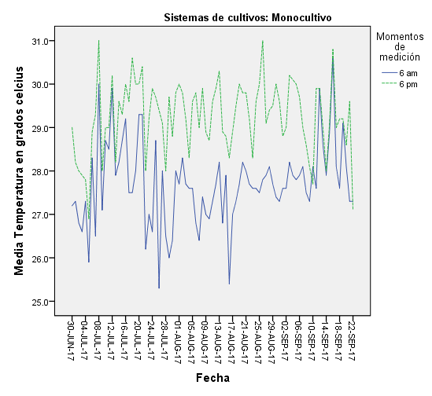 Figura No. 4: Datos de temperaturas en Grados Celsius tomados en sistema de Monocultivo.
