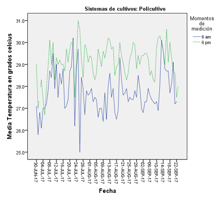 Figura No. 3: Datos de temperaturas en grados Celsius tomados en el sistema de policultivo.
