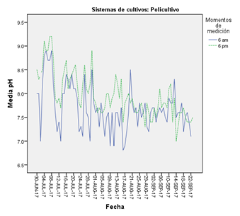 Figura No. 5: Potencial de iones de hidrógeno tomados en sistema de policultivo.