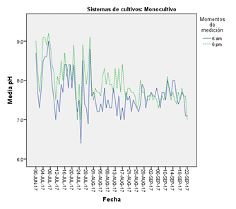 Figura No. 6: Potencial de iones de hidrógenos tomados en el sistema de monocultivo.