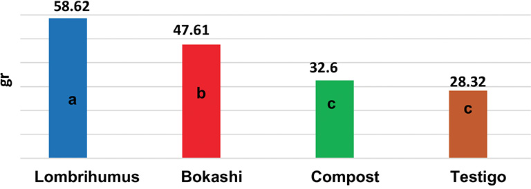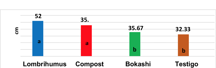 Según López y Miranda (2015), el abono orgánico Lombrihumus tiene alto grado de descomposición microbiana, y su efecto lo hace más eficiente dando como respuesta altos contenido de materia verde de las hojas, otra ventaja que este presenta es el alto grado de degradabilidad y su absorción acelerada para que las plantas tengan efecto en poco tiempo.