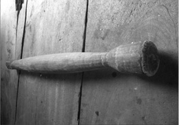 El molinillo, este artefacto ha sido diseñado por los ulwas y elaborado en madera de caoba, a la vez en los hogares es utilizado en la cocina para hacer batidos de diferentes frutas o bastimento. En este artefacto se observa el pulido y el acabado muy atractivo.