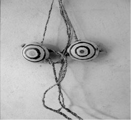El sostén, la ilustración muestra un componente de la vestimenta de las ulwas en tiempo de los ancestros, las mujeres lo utilizaban para cubrirse los senos, estos eran elaborados con jícaros. Podemos observar en la figura que estos portabustos se sujetaban en ese momento con bejucos. La figura muestra trazos que representan círculos concéntricos y podría decirse que su forma representa una elipse, una figura cónica. Estos artículos llevaban un proceso de elaboración para alcanzar la estética deseada, manifiestan que después de limpiarlos, le echaban al algodón un líquido sacado de una fruta lo que permitía que se pusiera blanco. Este artículo les mantenía los pechos muy bien y no les causaba ningún daño.