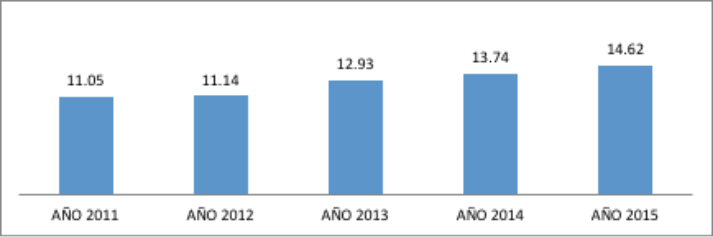Como se puede ver el abandono universitario ha ido aumentando año con año, desde un 11.05 en el 2011 hasta parar en un 14.62 en el 2015.