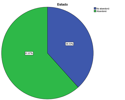 De los 347 estudiantes matriculados en el primer semestre de las carreras en estudio, el 61.7% de estos estudiantes abandonaron su carrera antes del primer semestre del año 2017. Este porcentaje representa un total de 214 estudiantes. Mientras que los que permanecieron representan un 38.3%, lo que corresponde a 133 estudiantes.