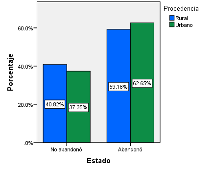 Factores que influyen en el abandono escolar: El 58.4% de los retirados lo hicieron durante el primer periodo de evaluación, el 60.6% eran mujeres, el 77.37% son solteros, el 69.35% posee edad entre 15 años y 22 años, el 56.20% poseían trabajo, el 75.18% eran del casco urbano, todos los estudiantes de las carreras Zootecnia y Contabilidad eran del casco urbano, el 43.80% pertenecen a la modalidad sabatina, el promedio de asignaturas reprobadas anda entre 2.33 y 3.27, el promedio de notas en la URACCAN están reprobadas con un 44.41%, el 84.67% estudiaron en escuela pública y por último, el promedio del cuarto y del quinto año se encuentran entre 74.93 y 76.98 por ciento respectivamente, lo que constituye una nota aprobada.