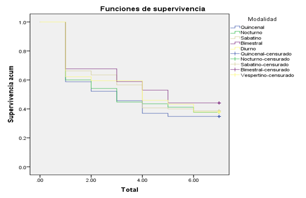 Los métodos de supervivencia usados en este estudio fueron: tablas de mortalidad, procedimiento Kaplan-Meier y la Regresión de Cox.
