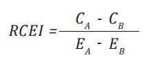 donde CA y EArepresentan el coste y la efectividad de la alternativa objeto de estudio, mientras que CB y EB son los correspondientes a la alternativa estándar de comparación. La efectividad y costos de la tiroglobulina fueron CA y EA y las demás alternativas como ultrasonido, como TAC o RMN fueron C(X) y E(X).