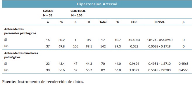Los antecedentes personales patológicos parecen ser un factor de riesgo significativo para la hipertensión arterial, mientras que los antecedentes familiares patológicos no muestran una asociación significativa.