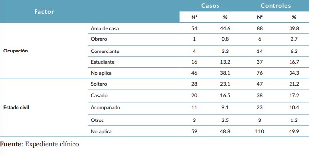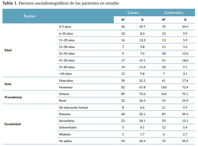 Respecto al sexo, predominó el femenino tanto en casos como en controles, lo cual contrasta con estudios que reportan un predominio masculino en IAAS19,12. En este estudio, esta diferencia se explica por la naturaleza de uno de los hospitales incluidos es el (Hospital de la Mujer). La procedencia urbana fue mayoritaria en ambos grupos, sin asociación estadística. La escolaridad y ocupación tampoco mostraron relación estadísticamente significativa con IAAS, lo que concuerda con los hallazgos que destacan factores clínicos por encima de los sociodemográficos7, (tabla 1).