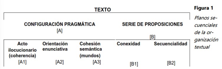 La figura 1 muestra la estructura del texto a partir de planos o módulos de control. El primero es la organización pragmática (A1-A2-13), el segundo es la gramática del texto (B1) y el tercero es la organización secuencial (B2). En vista de lo anterior, conviene profundizar en cada uno de los módulos para determinar la tipología discursiva que prevalece.