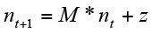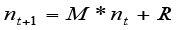 es el vector de reclutamiento. Los coeficientes de transición de la matriz
