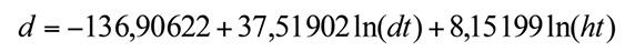 Debido a que las alturas de corte son variables, se estandarizó el diámetro de los tocones a una altura de corte de 1,3 m (dap) con la ecuación de Pérez (1954) y Suárez (2001):