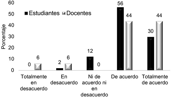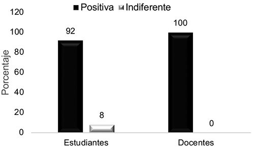 La variable sostenibilidad fue considerada como muy buena por estudiantes y docentes (82 y 84 %, respectivamente), este resultado denota que las prácticas desarrolladas tienen una aplicabilidad y utilidad significativa tanto en la vida académica como en la vida cotidiana del estudiantado.