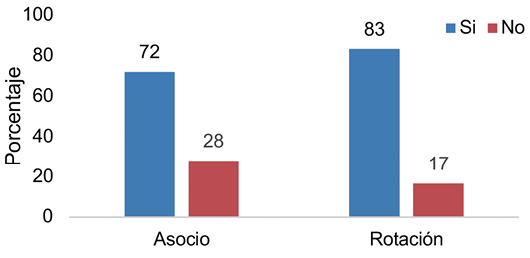 El asocio y rotación de cultivos, son prácticas de manejo del suelo que favorecen su recuperación, el aumento de la micro-fauna benéfica, la recuperación de la materia orgánica, así como la mejora de sus propiedades físicas como la textura y la estructura, la figura 8 indica un hecho positivo y es que la gran mayoría de las y los productores están utilizando en alguna medida estas formas de manejo del suelo.