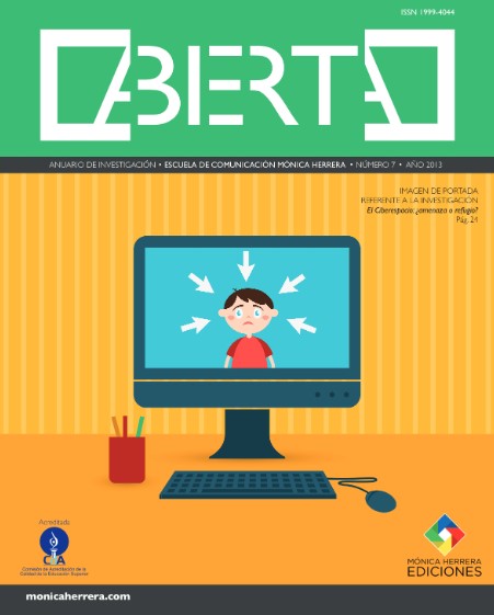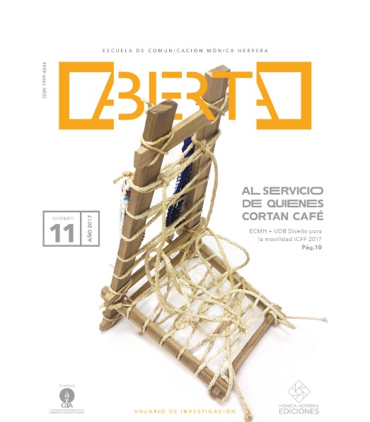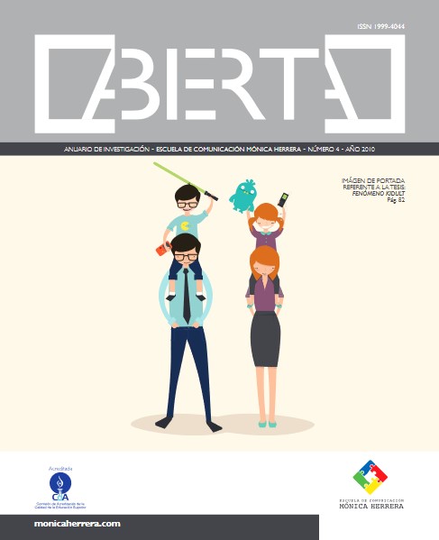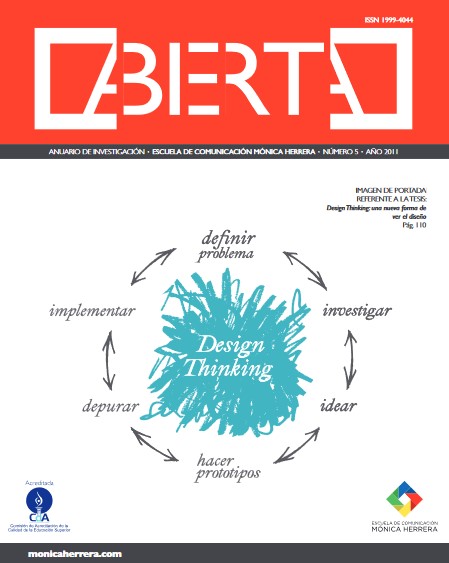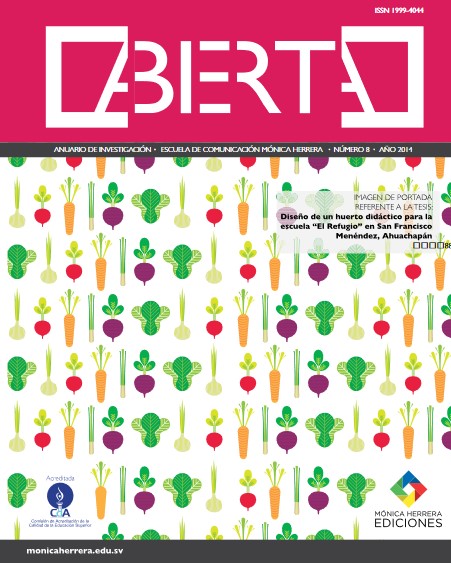 Núm. 8 (2014)Abierta es una revista que recopila lo trabajos académicos más relevantes realizados durante el transcurso del año en la Escuela de Comunicación Mónica Herrera. En ella se presentan temas de interés institucional, abordados desde las perspectivas de la comunicación, el marketing y el diseño estratégico, involucrando opiniones de diversos actores. A continuación se presenta la edición número ocho de esta revista.