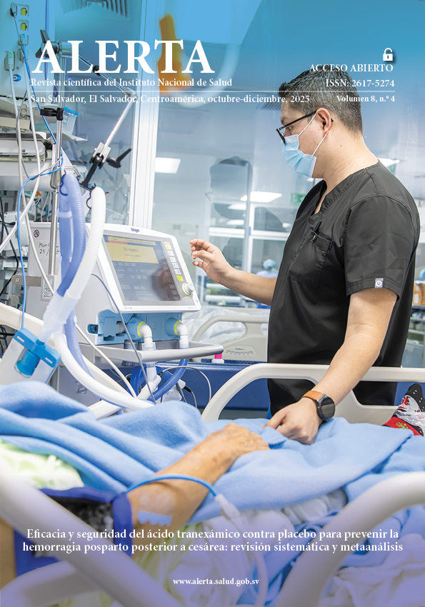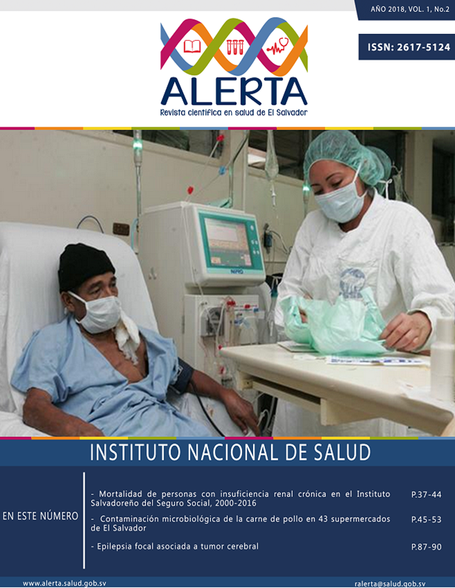 • TABLA DE CONTENIDO:     EDITORIAL  Rumbo hacia la ciencia, innovación y excelencia en salud pública  Por: Xochitl Sandoval López     ARTÍCULOS ORIGINALES  (1) Publicidad y exhibición de productos de tabaco en puntos de venta en El Salvador  Por: Alejandra María Sarmiento López, Joel Adonay de Paz Flores   (2) Flora bacteriana en hospitales del Instituto Salvadoreño del Seguro Social, 2010-2017  Por: Víctor David Franco  (3) Seroprevalencia de anticuerpos IgM para zika y chikungunya en la vigilancia nacional de dengue  Por: Carlos E. Hernández Ávila, Ernesto Pleités Sandoval  (4) Determinación de la respuesta glucémica en ratones experimentales entre tres tipos de chocolate  Por: Elizabeth Monserrath Coto Hernández, José Guillermo Mejía Valencia   (5) Epidemiología de las intoxicaciones agudas por plaguicidas en El Salvador  Por: Edgar Quinteros, Alejandro López  (6) Advertencias sanitarias y empaquetado neutro de productos de tabaco en la percepción de los salvadoreños  Por: Alejandra María Sarmiento López, Joel Adonay de Paz Flores  (7) Factores de riesgo relacionados con el parto prematuro en El Salvador  Por: Larisa Chavarría  (8) Patrones electroencefalográficos y evolución clínica en pacientes con encefalopatía en Unidad de Cuidados Intensivos  Por: Karol Carolina Carballo, Ricardo Carbonell Mateu, Susana Peña, Roberto Leonel Ayala Minero     TECNOLOGÍA SANITARIA  (9) Filtro de roca basáltica para agua residual  Por: Manolo Echeverría Mata     COMUNICACIONES BREVES  (10) Atención preconcepcional: brechas en la atención de salud sexual y reproductiva en El Salvador  Por: Mireya Jandres     METODOLOGÍA DE LA INVESTIGACIÓN  (11) Control de sesgos: piedra angular de la validez interna en la investigación para la salud  Por: María-Virginia Rodríguez Funes     DIAGNÓSTICO POR IMÁGENES  (12) Síndrome de banda amniótica  Por: Francisco Javier Delgado Montano, Sandra Carolina Mena Ugarte     CASO CLÍNICO  (13) Viremia prolongada por virus de zika en primer trimestre del embarazo  Por: Carlos E. Hernández Ávila, Ana María Barrientos, Élmer Wilfredo Mendoza
