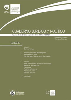 Revista electrónica Cuaderno Jurídico y Político. ISSN electrónico: 2414-4428, ISSN impreso: 2413-810X. Editada y publicada por ICEJP, Universidad Politecnica de Nicaragua, Nicaragua