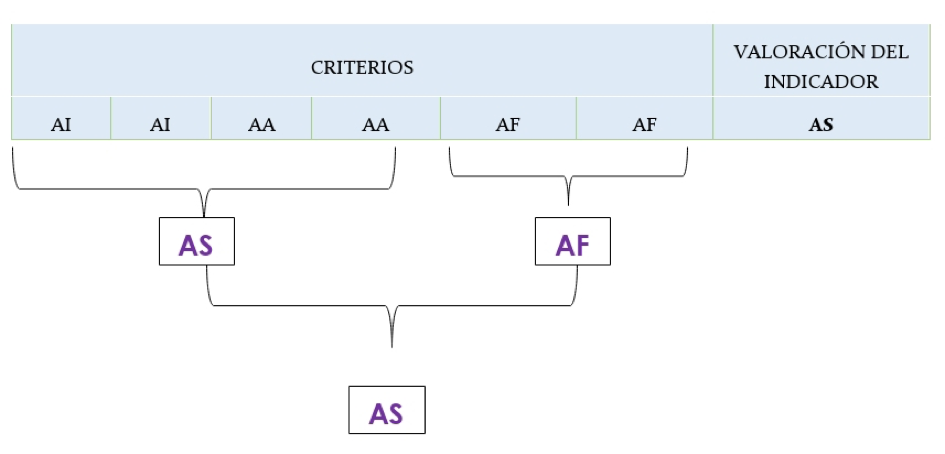 | Criterio 1 | Criterio 2 | Criterio 3 | Valoración del indicador |