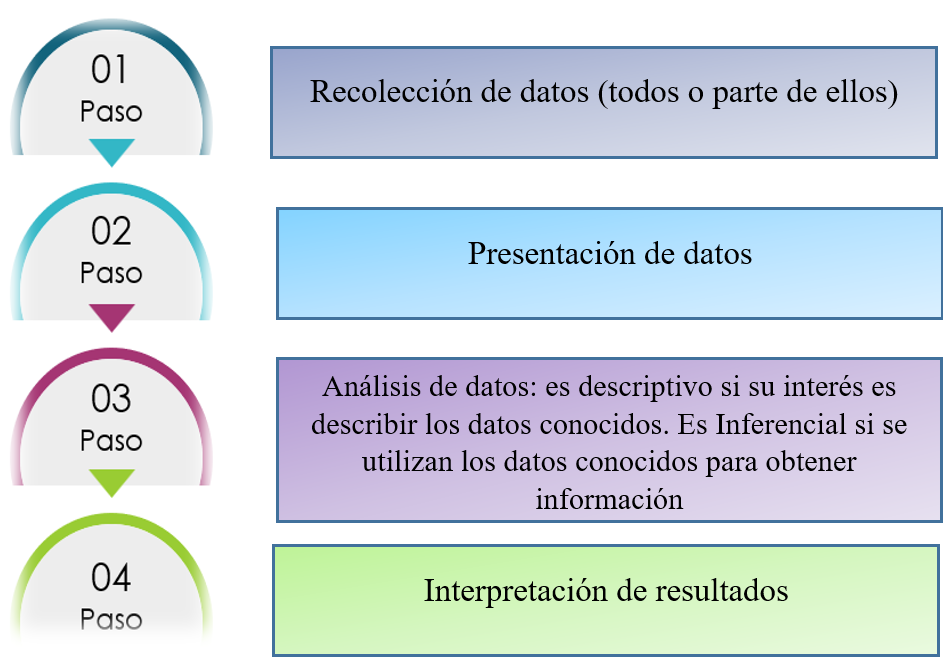 Nota. La figura muestra los cuatro pasos de un análisis estadístico. Fuente: creación de los autores.