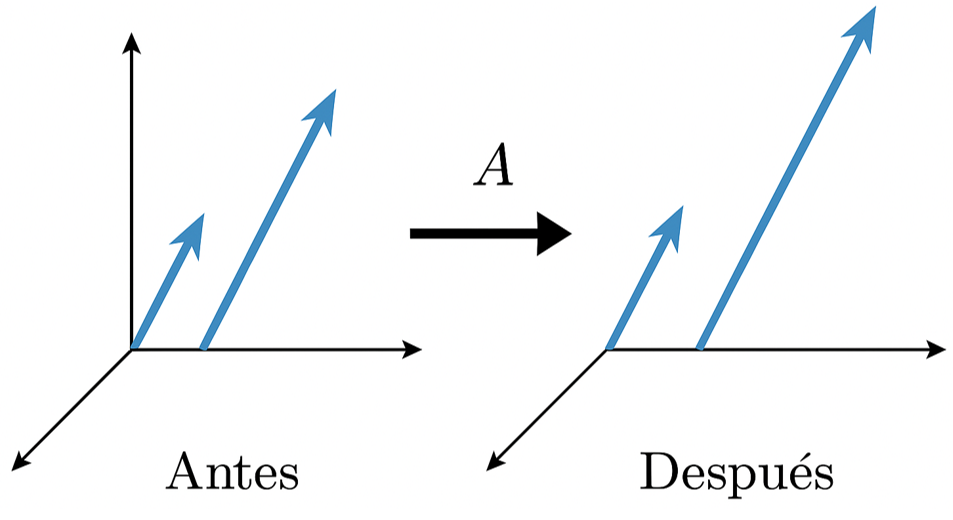 Figura 3. Visualización del comportamiento de los eigenvectores bajo una transformación lineal: dirección invariante.