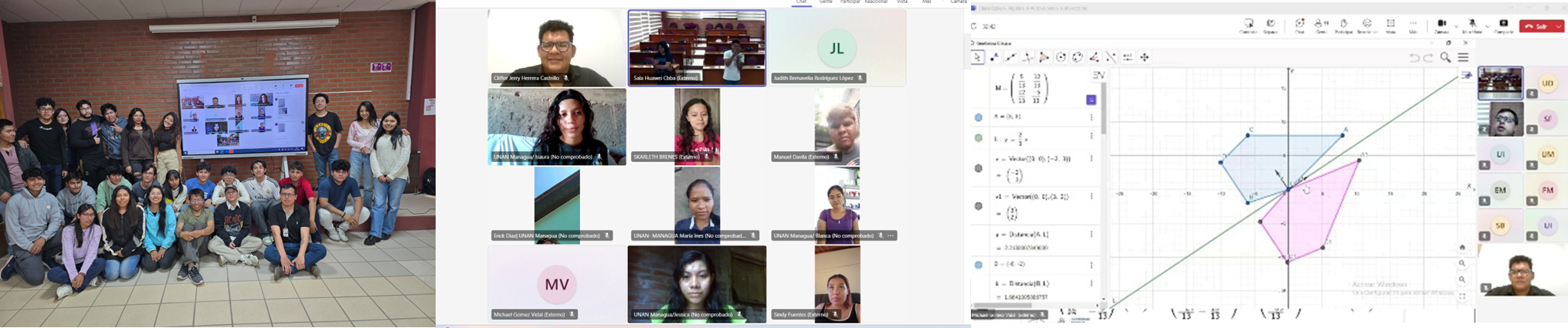 Durante el desarrollo del curso de Álgebra II, la UNAN-Managua/CUR-Estelí y la Universidad Privada del Valle compartieron dos sesiones espejo que abordaron contenidos complejos: transformaciones lineales y valores/vectores propios. Pero lo más valioso no fue solo el contenido, sino la forma en que este se vivió. Los estudiantes pudieron mirar el mismo concepto desde dos enfoques culturales, metodológicos y pedagógicos distintos. Participaron activamente, discutieron, compararon y, lo más importante, aprendieron juntos. Este ensayo es una reflexión sobre lo que significan estas experiencias para la formación matemática universitaria, no solo en términos de conocimiento, sino también de actitud, colaboración y apertura al otro.