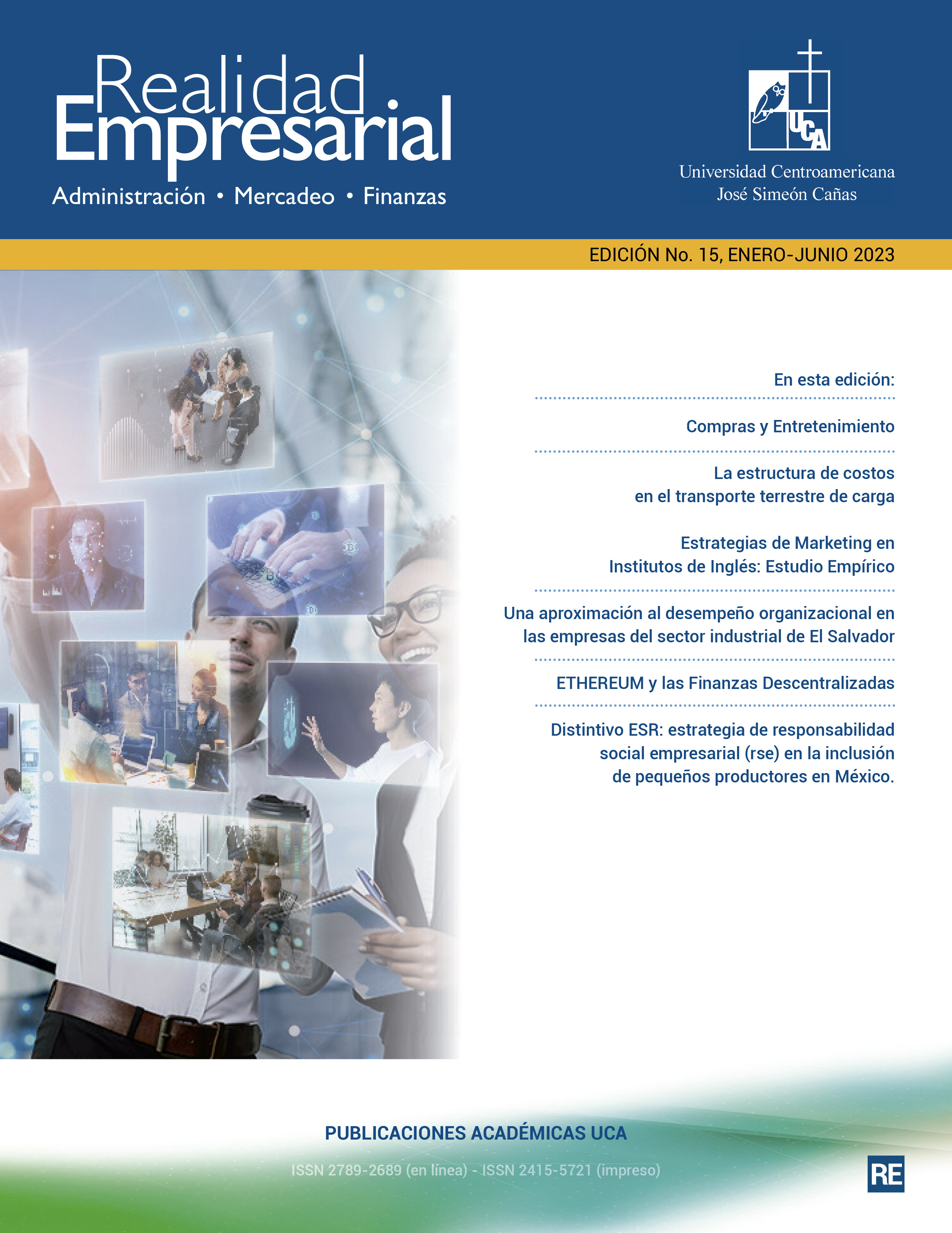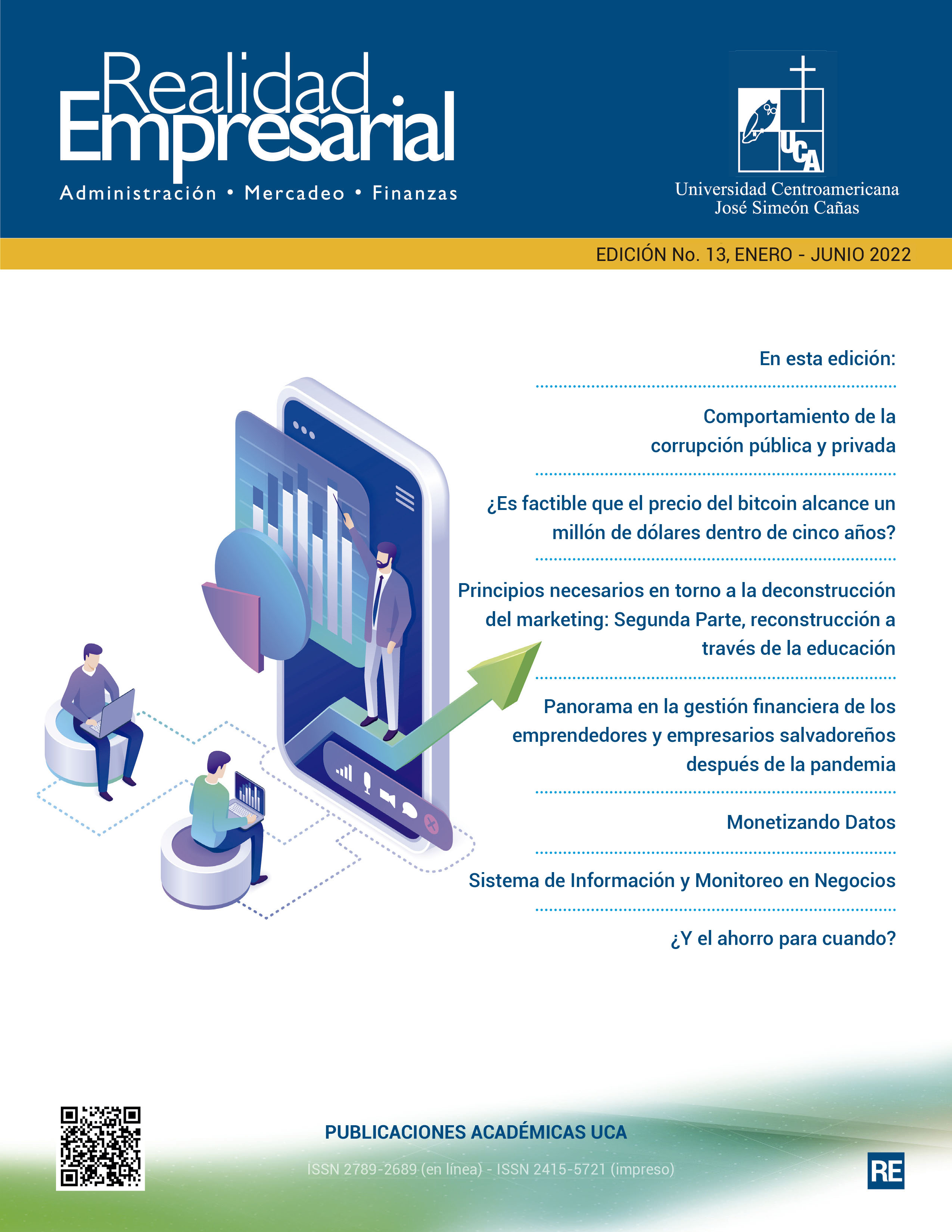 Realidad Empresarial es una publicación semestral de los Departamentos de Administración de Empresas, Contabilidad y Finanzas, además del departamento de Operaciones y Sistemas de la Facultad de Ingeniería y Arquitectura de la Universidad Centroamericana José Simeón Cañas.