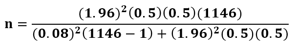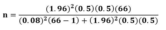 La selección de la muestra se realizó con un diseño muestral probabilístico en dos etapas, primero se consideró cada departamento como un estrato, y luego se efectuó un Muestreo Simple Aleatorio (MSA) sobre las unidades muestrales. Para calcular el tamaño de la muestra de los docentes se utilizó un modelo matemático con población conocida bajo incertidumbre, se usó un 50% como probabilidad de éxito y un 50 % como probabilidad de fracaso, para el error de estimación se consideró un 8 %, y un 95% para el nivel de confianza, según la fórmula que se muestra a continuación: