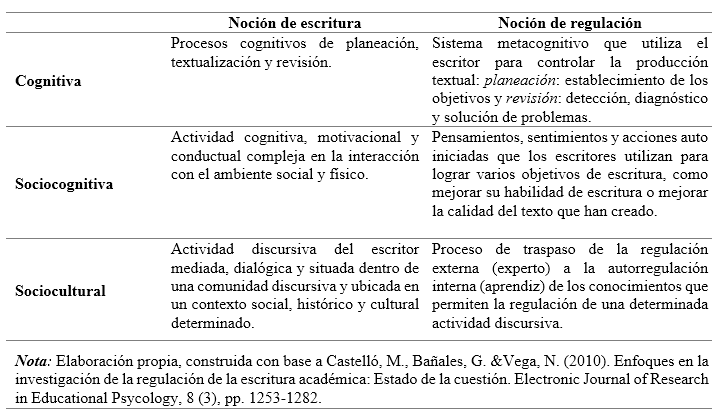 Castelló, M., Bañales, G. &Vega, N. (2010). Enfoques en la investigación de la regulación de la escritura académica: Estado de la cuestión. Electronic Journal of Research in Educational Psycology, 8 (3), pp. 1253-1282.