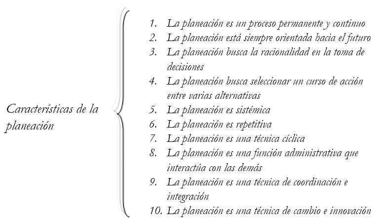 Las características más importantes de la planeación se muestran en el siguiente esquema: