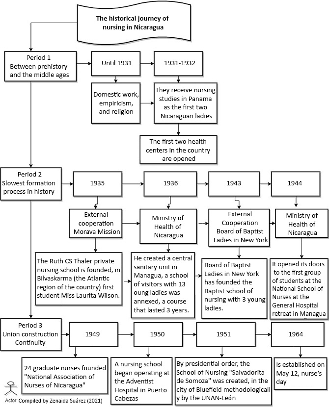 Graphic organizer. The historical journey of nursing in Nicaragua