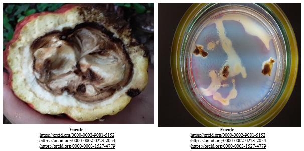 Se cultivaron dos tipos de tejidos de frutos de cacao: se tomaron esporas de la cascara y se tomaron porciones del mesocarpio del cacao infectado con el fin de comprobar que cultivo obtenía mejores resultados en base al método propuesto por (Contreras, 2006).