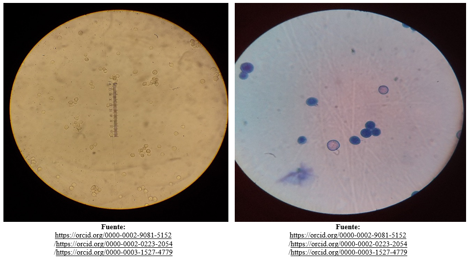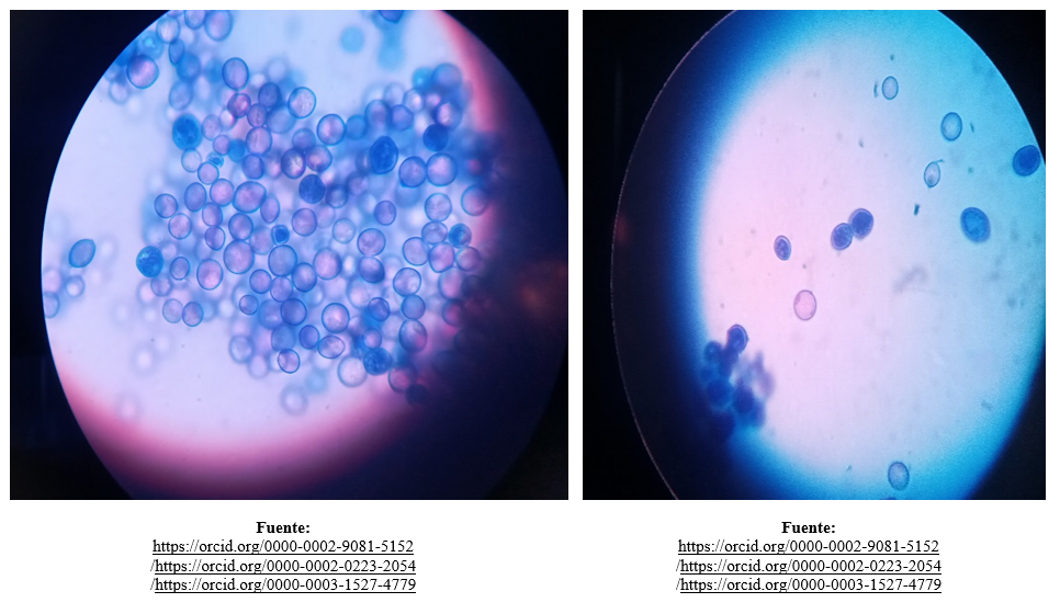 Se realizaron dos tipos de tinciones Tinción de Gram y tinción con Azul de lactofenol y se realizaron tinciones con azul de metileno a los hongos obtenidos y se observaron e identificaron al microscopio esporas e hifas del hongo Moniliophthora roreri (cif) H. C. Evans,Stalpers, Samson & Benny.(1978) con características como: forma y diámetro.