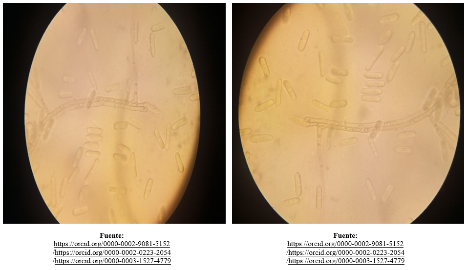 Pasados los diez días se seleccionaron placas Petri que presentaban crecimiento de hongos y se montaron en porta objetos para su debida identificación en el microscopio.