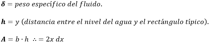 Mediante ecuaciones de mecánicas de fluidos, geometría e integrales definidas, es posible hacer cálculo de la fuerza que ejerce el fluido sobre la placa sumergida representada en la figura 2 y 3.