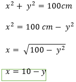 Paso 5: Ya con los datos analizados se puede trabajar la ecuación general de la circunferencia adaptada a la placa sumergida planteada en el problema. Por lo tanto, hay que determinar “x” en función “y”. Reemplazando los valores desarrollamos la ecuación para encontrar el valor de” x”.