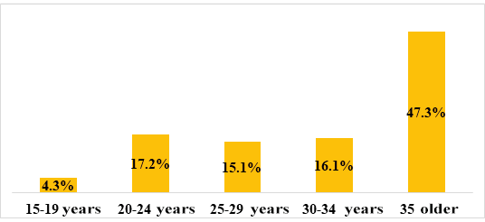 Age of the women studied, who attended at the Leonel Rugama health center, Estelí Nicaragua year 2021.