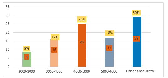 The monthly income received by self-employed workers varies according to the economic activity they carry out, with 9 percent earning between 2000 and 3000 córdobas, 17 percent between 3000 and 4000 córdobas, 26 percent between 4000 and 5000, and 18 percent between 5000 and 6000 equivalent to 1.27 minimum wage, and only 30. percent reported generating income in other amounts that they did not define.