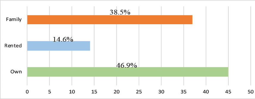 In addition, 46.9% have their own home that guarantees them a safe shelter, however, 53.10% have not yet been able to acquire their homes, having as an alternative to rent or ultimately live with their relatives.